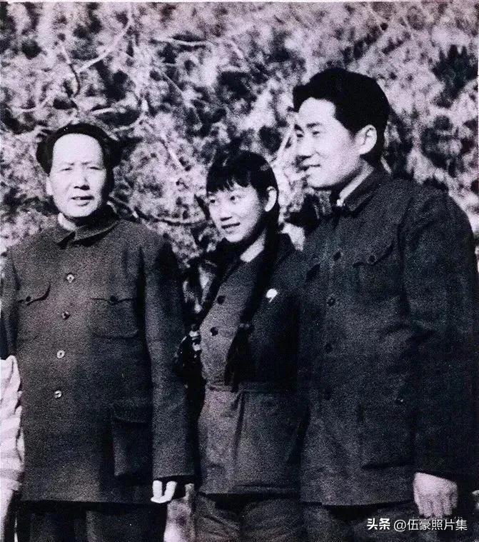 毛泽东主席与刘思齐、毛岸英在一起